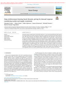 Fraija, A., Henao, N., Agbossou, K., Kelouwani, S., Fournier, M. et Nagarsheth, S. H. (2024). Deep reinforcement learning based dynamic pricing for demand response considering market and supply constraints. Smart Energy, 14 . Article 100139. ISSN 2666-9552 DOI 10.1016/j.segy.2024.100139
