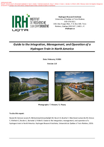 Baudy, M., Gervais-Lavoie, R., Mohammadmirzaeibafghi, M., Hourri, A., Bareha, Y., Marchand-Lamarche, M., Giroux, F., Almheiri, Z., Boulon, L., Barnabé, S. et Pollet, B. (2026). Guide to the integration, management, and operation of a hydrogen train in North America. [Rapport de recherche]