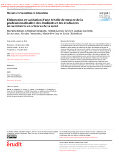 Bélisle, M., Heilporn, G., Lavoie, P., Lakhal, S., Lechasseur, K., Fernandez, N., Caty, M.-È. et Chichekian, T. (2022). Élaboration et validation d’une échelle de mesure de la professionnalisation des étudiants et des étudiantes universitaires en sciences de la santé. Mesure et évaluation en éducation, 45 (2). pp. 69-105. ISSN 0823-3993 2368-2000 DOI 10.7202/1105562ar