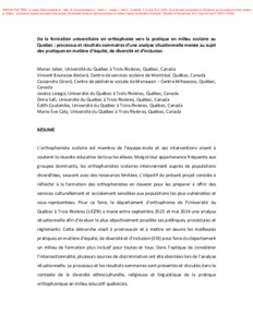 Jaber, M., Bourassa-Bédard, V., Girard, C., Lesage, J., Safi, D., Coulombe, É. et Caty, M.-È. (2025). De la formation universitaire en orthophonie vers la pratique en milieu scolaire au Québec : processus et résultats sommaires d’une analyse situationnelle menée au sujet des pratiques en matière d’équité, de diversité et d’inclusion. Éducation et francophonie, 53 (1). ISSN 0849-1089 1916-8659