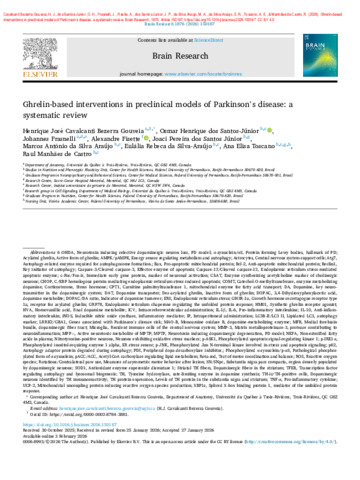 Cavalcanti Bezerra Gouveia, H. J., dos Santos-Júnior, O. H., Frasnelli, J., Fisette, A., dos Santos Júnior, J. P., da Silva Araújo, M. A., da Silva-Araújo, E. R., Toscano, A. E. et Manhães de Castro, R. (2026). Ghrelin-based interventions in preclinical models of Parkinson’s disease: A systematic review. Brain Research, 1876 . Article 150187. ISSN 0006-8993 1872-6240 DOI 10.1016/j.brainres.2026.150187