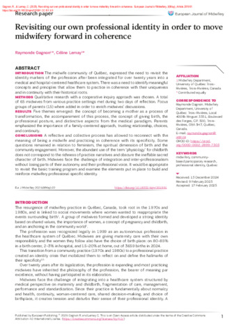 Gagnon, R. et Lemay, C. (2025). Revisiting our own professional identity in order to move midwifery forward in coherence. European Journal of Midwifery, 9 (May). Article 201991. ISSN 2585-2906 DOI 10.18332/ejm/201991