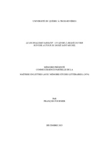 Fournier, François (2025). Le journalisme narratif : un genre à (re)découvrir suivi de autour du boisé Saint-Michel. Mémoire. Trois-Rivières, Université du Québec à Trois-Rivières.