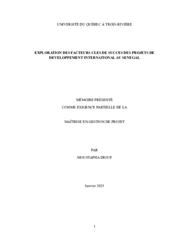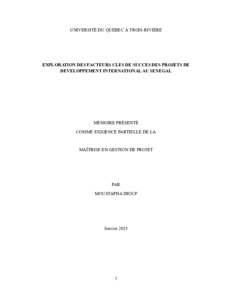 Diouf, Moustapha . Exploration des facteurs clés de succès des projets de développement international au Sénégal. Mémoire. Trois-Rivières, Université du Québec à Trois-Rivières, 115 p.