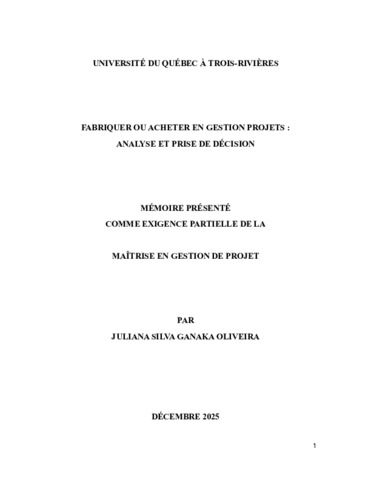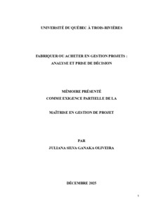 Silva Ganaka Oliveira, Juliana (2025). Fabriquer ou acheter en gestion projets : analyse et prise de décision. Mémoire. Trois-Rivières, Université du Québec à Trois-Rivières, 107 p.