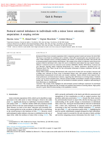 Acien, M., Dami, A., Blanchette, V. et Moisan, G. (2025). Postural control imbalance in individuals with a minor lower extremity amputation: A scoping review. Gait and Posture, 122 . pp. 339-351. ISSN 1879-2219, 0966-6362 DOI 10.1016/j.gaitpost.2025.08.064