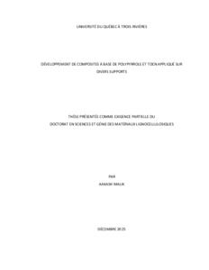 Malik, Aakash (2025). Développement de composites à base de polypyrrole et TOCN appliqué sur divers supports. Thèse. Trois-Rivières, Université du Québec à Trois-Rivières, 170 p.