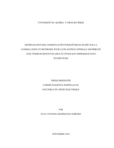 Domínguez Jiménez, Juan Antonio (2025). Modélisation des communautés énergétiques basée sur la cosimulation et méthodes pour leur gestion optimale distribuée avec énergie renouvelable et stockage thermique sous incertitude. Thèse. Trois-Rivières, Université du Québec à Trois-Rivières, 211 p.