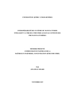 Simard, Jonathan (2025). Interopérabilité des systèmes du manufacturier intelligent à l’ère de l’industrie 4.0 dans le contexte des PME manufacturières. Mémoire. Trois-Rivières, Université du Québec à Trois-Rivières, 108 p.