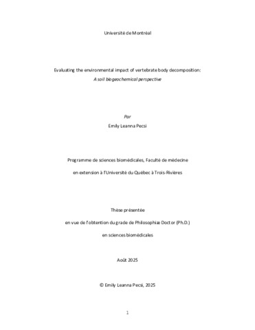 Pecsi, Emily Leanna (2025). Evaluating the environmental impact of vertebrate body decomposition: a soil biogeochemical perspective. Thèse. Trois-Rivières, Université du Québec à Trois-Rivières, 213 p.