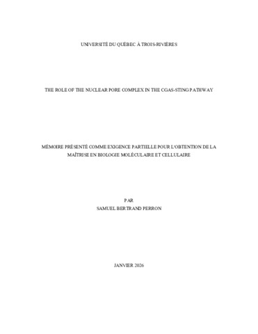 Bertrand Perron, Samuel (2026). The role of the nuclear pore complex in the cGAS-STING pathway. Mémoire. Trois-Rivières, Université du Québec à Trois-Rivières, 90 p.