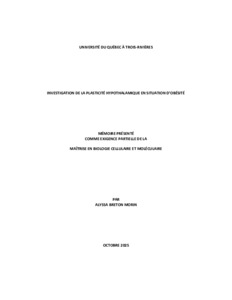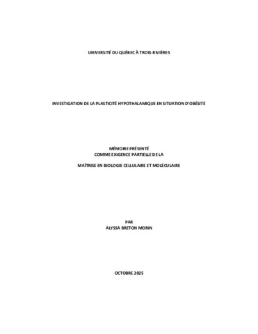 Breton Morin, Alyssa (2025). Investigation de la plasticité hypothalamique en situation d’obésité. Mémoire. Trois-Rivières, Université du Québec à Trois-Rivières, 99 p.