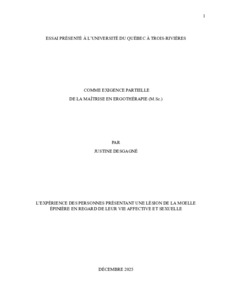 Desgagnés, Justine (2025). L’expérience des personnes présentant une lésion de la moelle épinière en regard de leur vie affective et sexuelle. Essai. Trois-Rivières, Université du Québec à Trois-Rivières, 98 p.