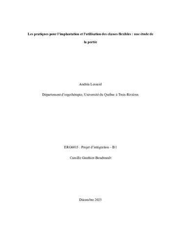 Lessard, Andréa (2025). Les pratiques pour l’implantation et l’utilisation des classes flexibles : une étude de la portée. Essai. Trois-Rivières, Université du Québec à Trois-Rivières, 62 p.
