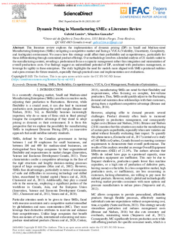 Lemire, G. et Gamache, S. (2025). Dynamic pricing in manufacturing SMEs: A literature review. IFAC-PapersOnLine, 59 (10). pp. 202-207. ISSN 2405-8963 DOI 10.1016/j.ifacol.2025.09.036