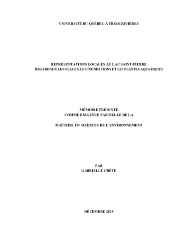 Crête, Gabrielle (2025). Représentations locales au lac Saint-Pierre regard sur les glaces, les inondations et les plantes aquatiques. Mémoire. Trois-Rivières, Université du Québec à Trois-Rivières, 129 p.