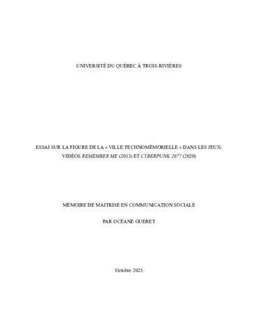 Gueret, Océane (2025). Essai sur la figure de la « ville technomémorielle » dans les jeux vidéos remember me (2013) et cyberpunk 2077 (2020). Mémoire. Trois-Rivières, Université du Québec à Trois-Rivières, 122 p.