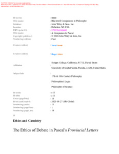 Malinowski-Charles, S. et Bernier, M.-A. (2026). Ethics and Casuistry: The ethics of debate in Pascal's Provincial letters. Dans : Avnur, Y. et Ariew, R., (eds.) A Companion to Pascal. Wiley, pp. 367-380.