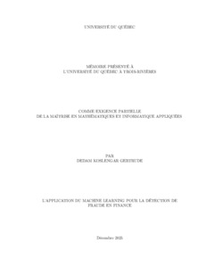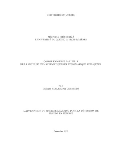 Gertrude, Dedam Koslengar (2025). L’application du Machine Learning pour la détection de fraude en finance. Mémoire. Trois-Rivières, Université du Québec à Trois-Rivières, 74 p.