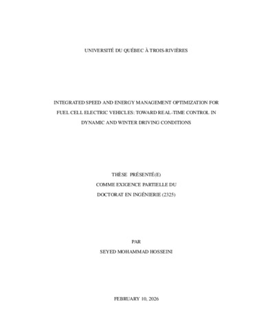 Hosseini, Seyed Mohammad (2026). Integrated speed and energy management optimization for fuel cell electric vehicles : toward real-time control in dynamic and winter driving conditions. Thèse. Trois-Rivières, Université du Québec à Trois-Rivières, 105 p.